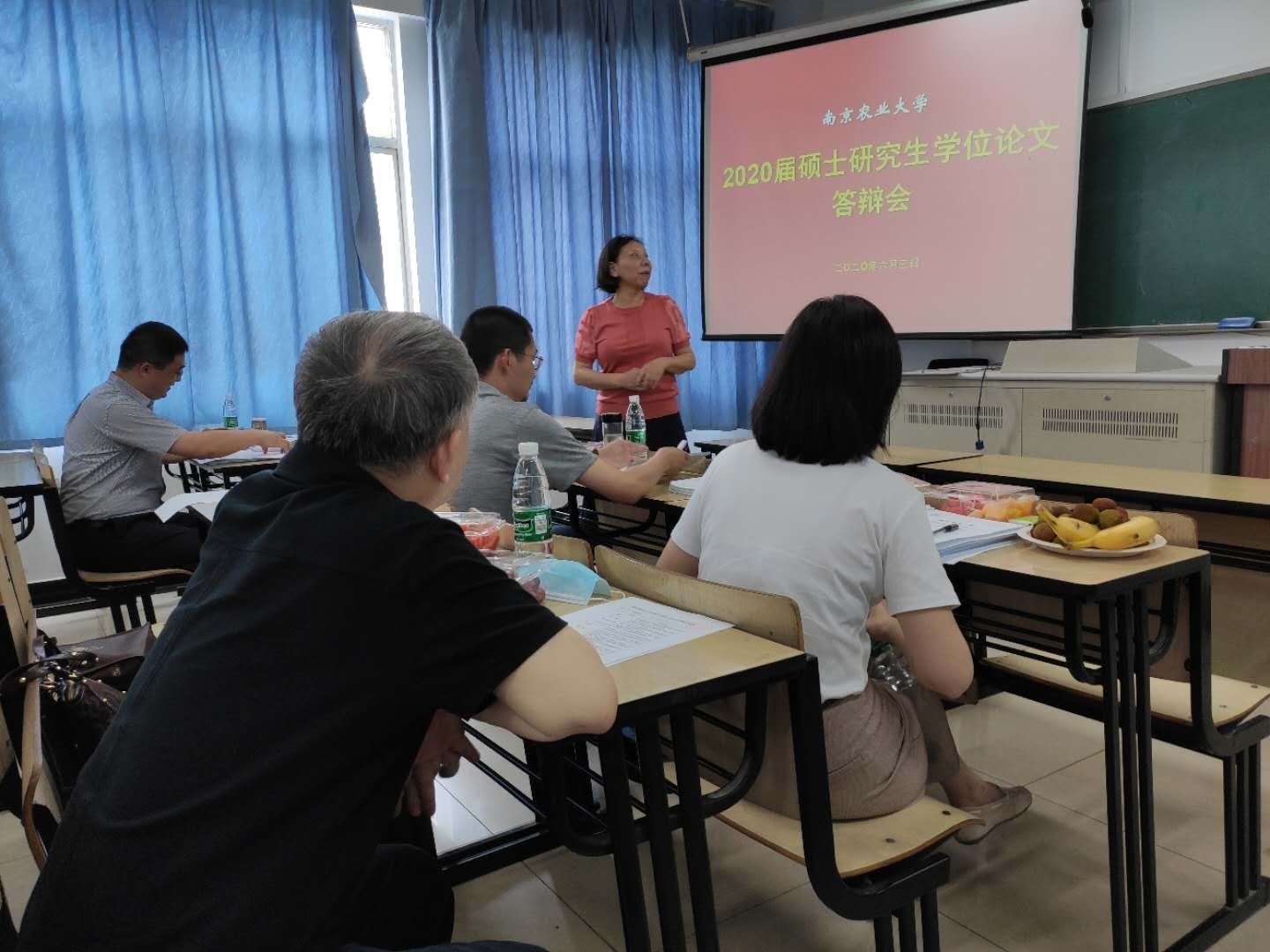 2020年6月3日下午,南京农业大学生物能源组方真教授研究生2017级工学硕士研究生孙杰(男),2018级工程硕士研究生董国华(男)和董倩(女)毕业答辩会在南京农业大学浦口校区汇贤楼A302举行。南京农业大学的何春霞教授担任答辩评审委员会主席,江苏省农科院的靳红梅研究员,南京工业大学的雍晓雨副教授和南京农业大学的刘玉涛副教授共三位专家担任评审委员。